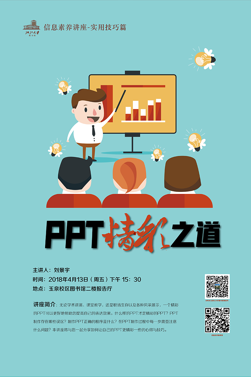 图书馆刘景宇老师将与大家分享如何让自己的PPT更精彩一些的心得与技巧。欢迎参加!