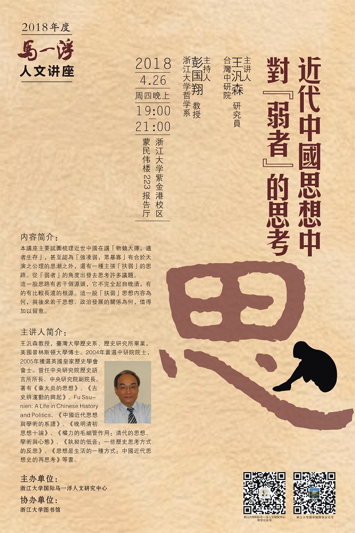 本講座主要試圖梳理近世中國在講「物競天擇,適者生存」,甚至認為「強凌弱,眾暴寡」有合於天演之公理的思潮之外,還有一種主張「扶弱」的思路。從「弱者」的角度出發去思考許多議題。