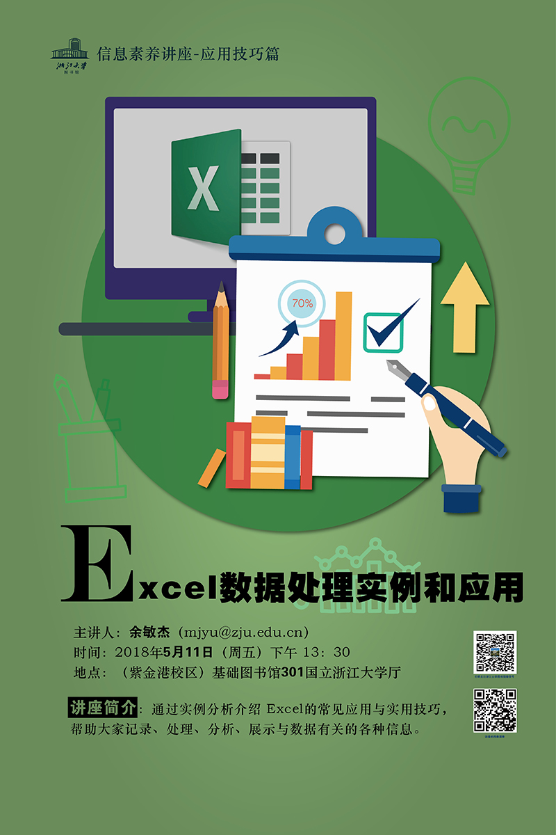 讲座简介:通过实例分析介绍 Excel的常见应用与实用技巧,帮助大家记录、处理、分析、展示与数据有关的各种信息。