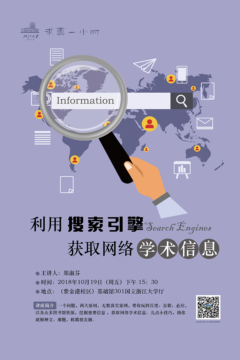 讲座简介:一个问题,两大原则,无数真实案例,带你玩转百度、谷歌、必应,以及众多图书馆资源,挖掘重要信息 ,获取网络学术信息。几点小技巧,助你破解神文、难题,称霸朋友圈。