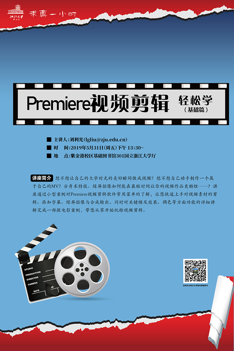 讲座简介:想不想让自己的大学时光的美好瞬间做成视频?想不想自己动手制作一个属于自己的MV?分身术特技、绿屏抠像如何能在最短时间让你的视频作品更酷炫……?讲座通过小型案例对Premiere视频剪辑软件常用菜单的了解,让您快速上手对视频素材的剪辑、添加字幕、绿屏抠像与合成输出。同时对关键帧及效果、调色等方面功能的详细讲解完成一部微电影案例,带您从零开始玩转视频剪辑。