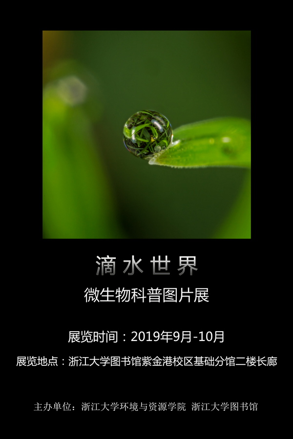 “滴水世界”:微生物科普图片展的图片由哈佛大学Scott Chimileski 博士和Roberto Kolter 教授创作的25张图片组成。从一滴水、一撮土出发,为观众展示了微生物世界的奇妙景象,是集科学与艺术为一体的科普作品,也是环境微生物的极好代言。