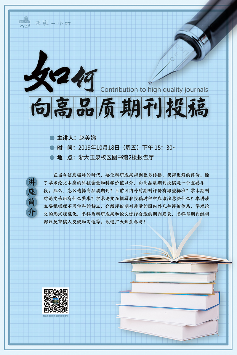 讲座简介: 在当今信息爆炸的时代,要让科研成果得到更多传播,获得更好的评价,除了学术论文本身的科技含量和科学价值以外,向高品质期刊投稿是一个重要手段。那么,怎么选择高品质期刊?目前国内外对期刊评价有那些标准?学术期刊对论文采用有什么要求?学术论文在撰写和投稿过程中应该注意些什么?本讲座主要根据理不同学科的特点,介绍评价期刊质量的国内外几种评价体系,学术论文的形式规范化,怎样为科研成果和论文选择合适的期刊发表,怎样与期刊编辑部以及审稿人交流和沟通等。欢迎广大师生参与!