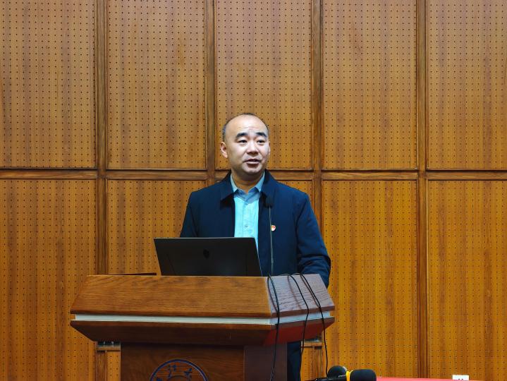 随后,代玉启教授围绕党的二十届四中全会精神,作题为《学习全会精神,展现文化担当》的专题党课。他系统解读了全会提出的“十五五”时期发展目标与重点任务,深入分析了文化建设在中国式现代化进程中的重要意义,鼓励图书馆党员立足文化阵地,主动担当作为,助力学校“书香校园”建设,涵养文化育人氛围。