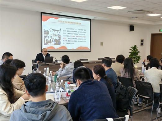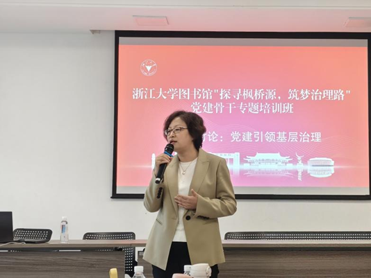 图书馆党委书记王苑就本次培训班的背景与设想作了介绍。她指出,图书馆分党校实施分级分类培训体系,分设“馆员先锋”全体党员培训班、“头雁领航”党建骨干培训班,“青简启航”青年馆员培训班等。本次“枫桥之行”是结合本馆实际情况组织实施的,旨在为图书馆提升治理水平带来理论提升,为图书馆在处理师生关系、化解舆论风险和提升沟通实效等方面提供实践指导。
