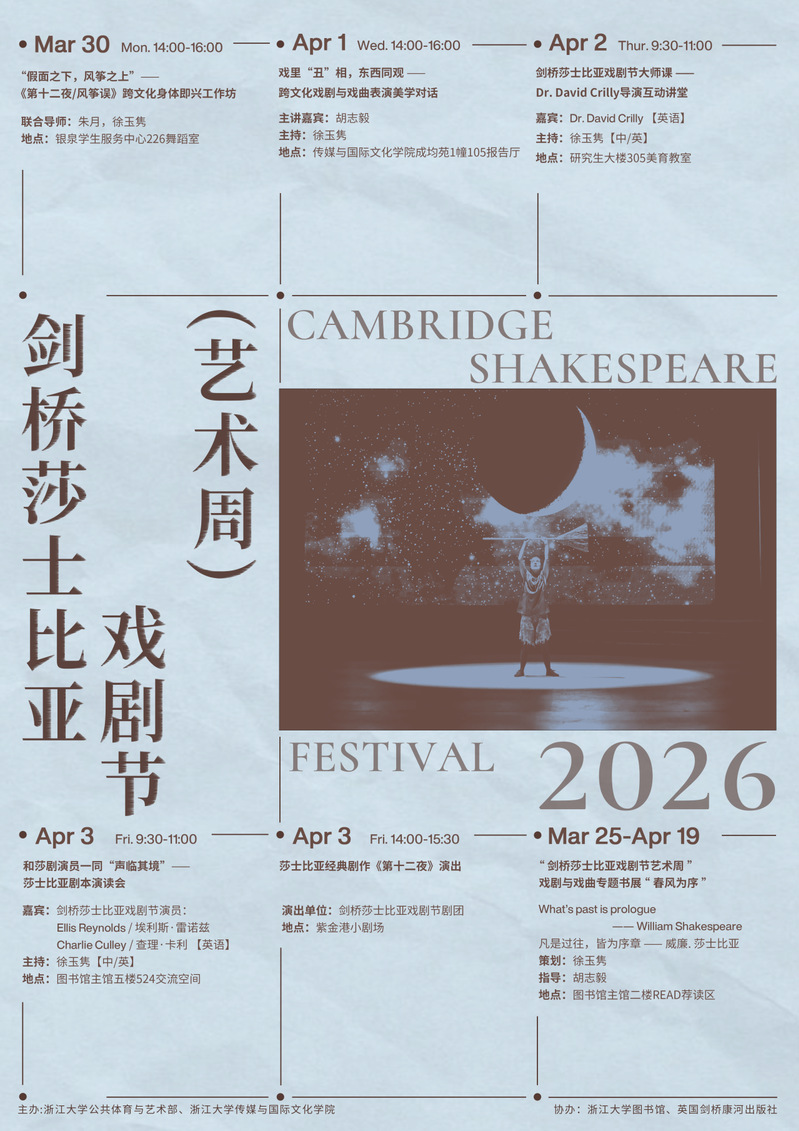 这个春天,让我们从书页出发,走进舞台,在浙江大学图书馆一起感受莎士比亚与中国戏曲的魅力。