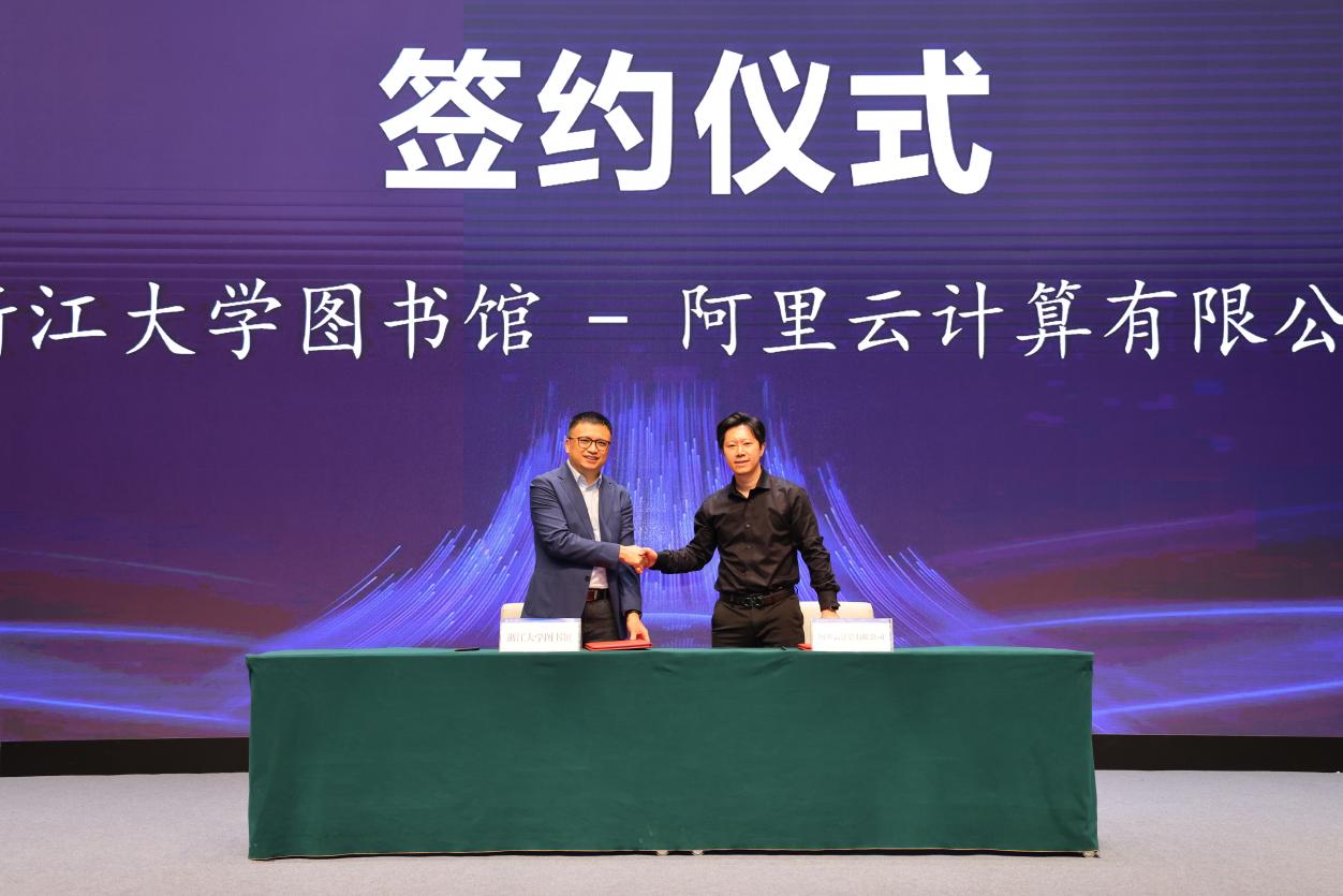 在签约仪式环节,浙江大学图书馆先后与北京中科闻歌科技股份有限公司、阿里云计算有限公司共同签署战略合作协议,标志着各方在技术协同、资源共享、服务创新、成果转化等方面的合作迈入深度融合、协同发展的新阶段。企业代表在发言中高度认可未来图书馆的创新价值与示范作用,明确表示将持续发挥自身优势,与浙江大学图书馆携手促进技术应用与知识服务的深度融合,共同打造校企合作典范。