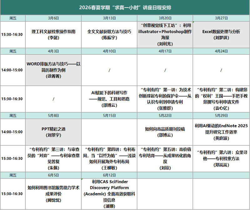 2026春夏学期“求真一小时”系列讲座日程